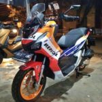 Pemilik ADV 150, Rian Pahlani memilih untuk menggunakan dekal grafik Honda Repsol untuk jentera miliknya itu.