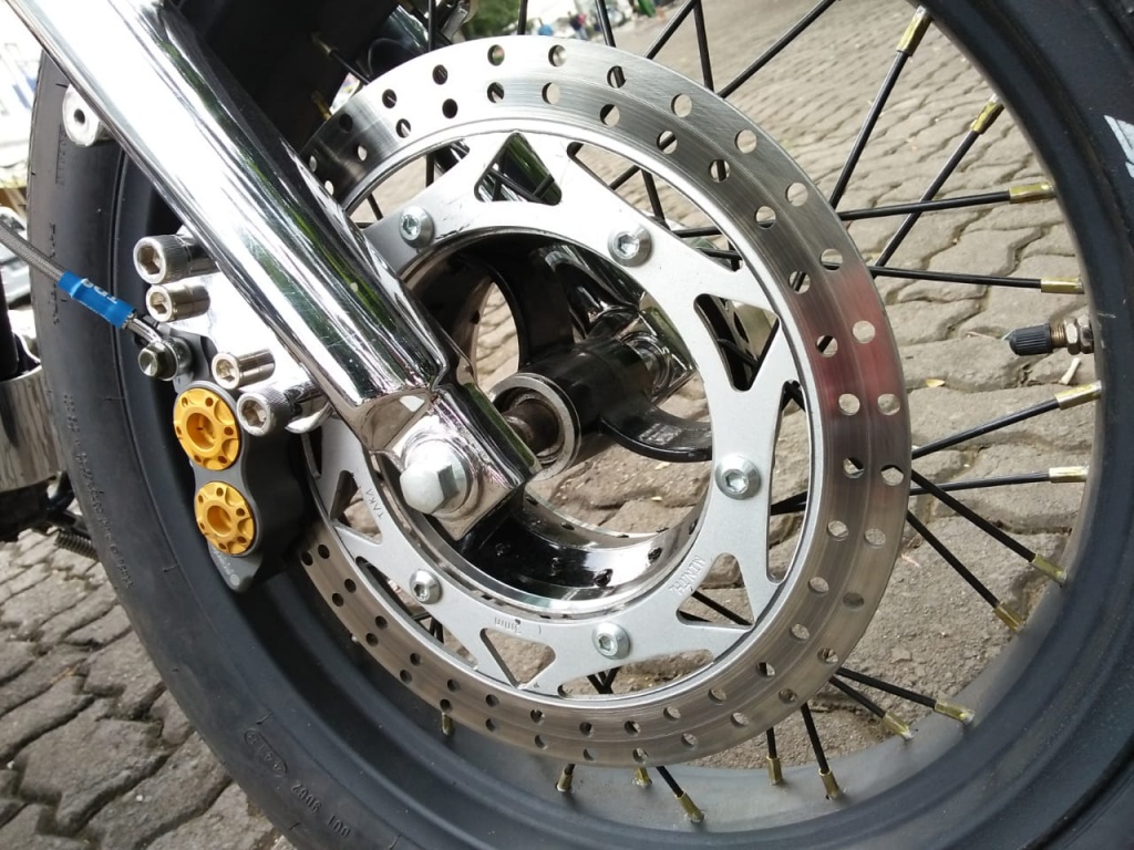 Tetapi proses itu tidak semudah disangka kerana dia perlu memasang suspensi depan dahulu sebelum dipasangkan rim dan tayar. Mengubah sudut rake bukan keutamaan, tetapi ketelitian sangat diperlukan ketika memasang tayar dan suspensi.