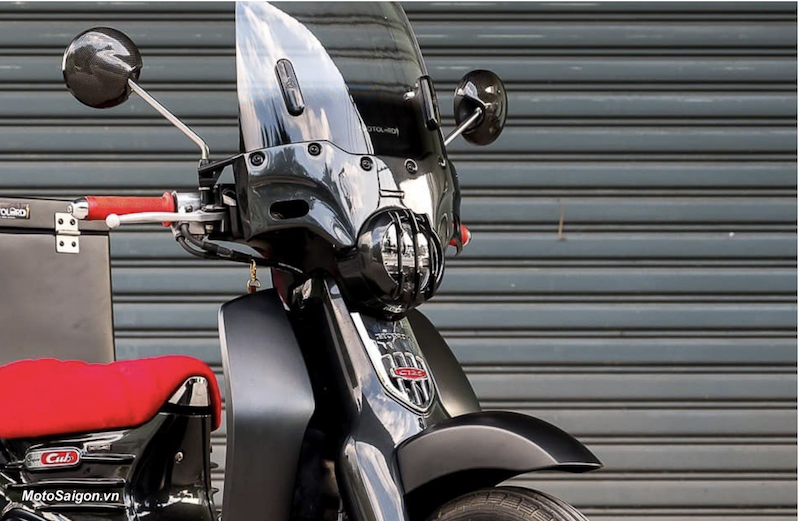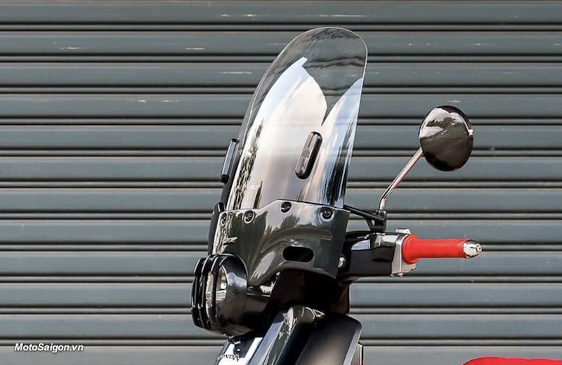 Selain itu, kapcai tersebut turut ditambah visor angin besar, manakala kedua-dua cermin sisi dihitamkan, sama seperti badan motosikal.