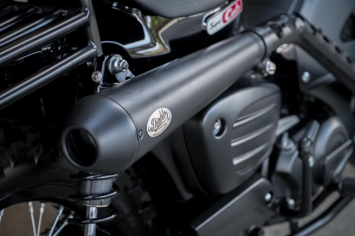 Ekzos Diablo dipasangkan lebih tinggi dekat pelana dan dipasangkan panel antibakar. Gaya ini biasanya dipakai model scrambler klasik.