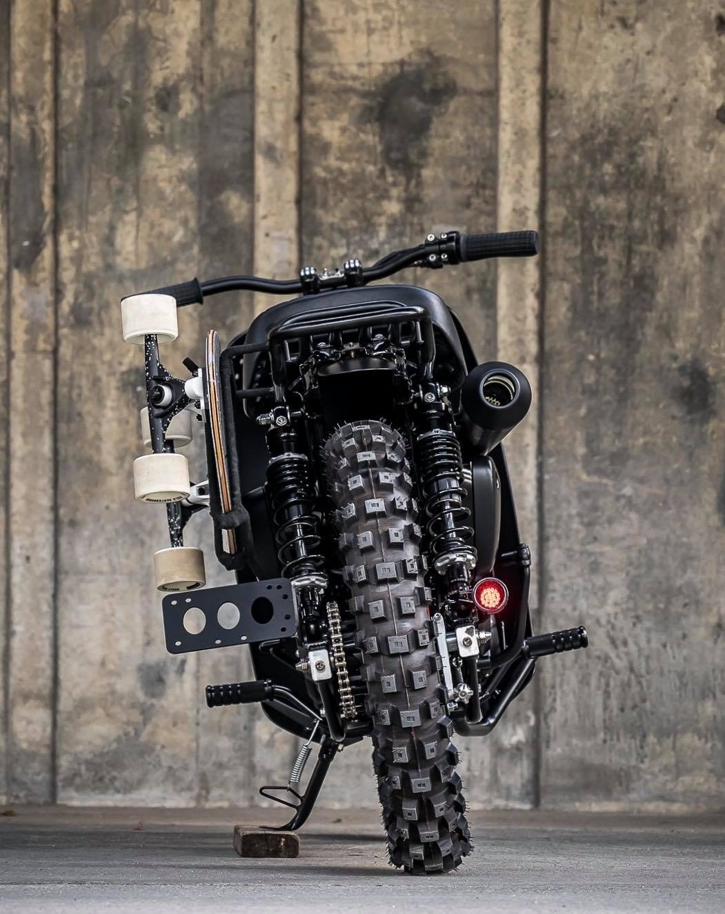 Rim jejari depan dan belakang dinaik taraf kepada 17 inci dengan bunga tayar dadu besar. Fork depan disembur cat hitam, manakala suspensi belakang dinaik taraf dengan dwi-spring boleh laras. Penutup rantai diubah dan fender depan dan belakang dipotong pendek.