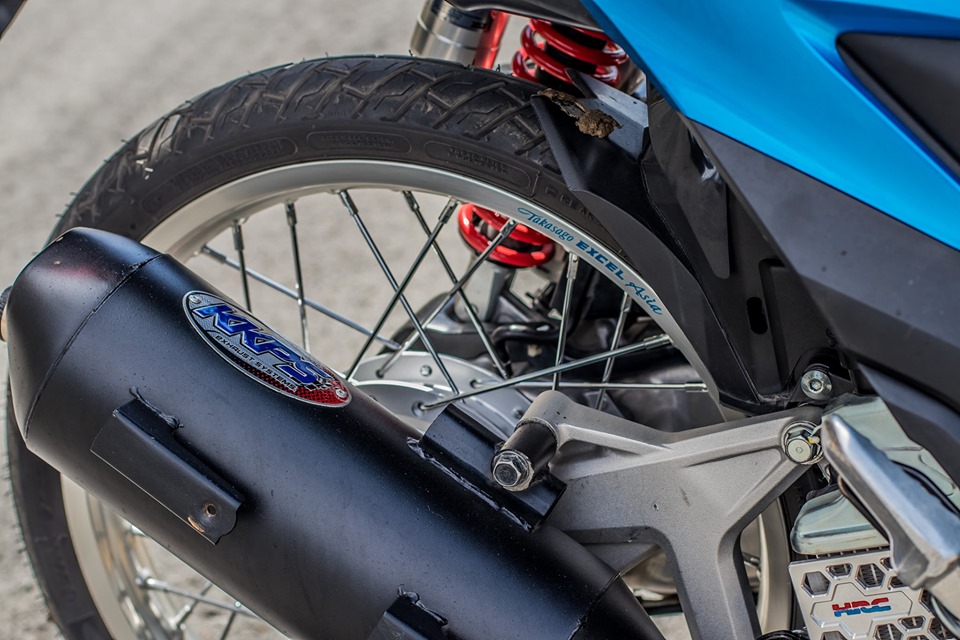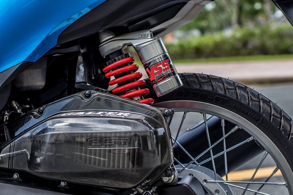 Brek cakera depan menggunakan jenama Galfer bersaiz 260mm yang dihiasai bolt Gr5 kebiruan. Suspensi belakang menggunakan tangki damper YSS yang boleh dipasangkan terus tanpa sebarang ubah suai bentuk asal. Enjin juga diubah suai untuk lebih prestasi dan menghasilkan deruman ekzos lebih buas.
