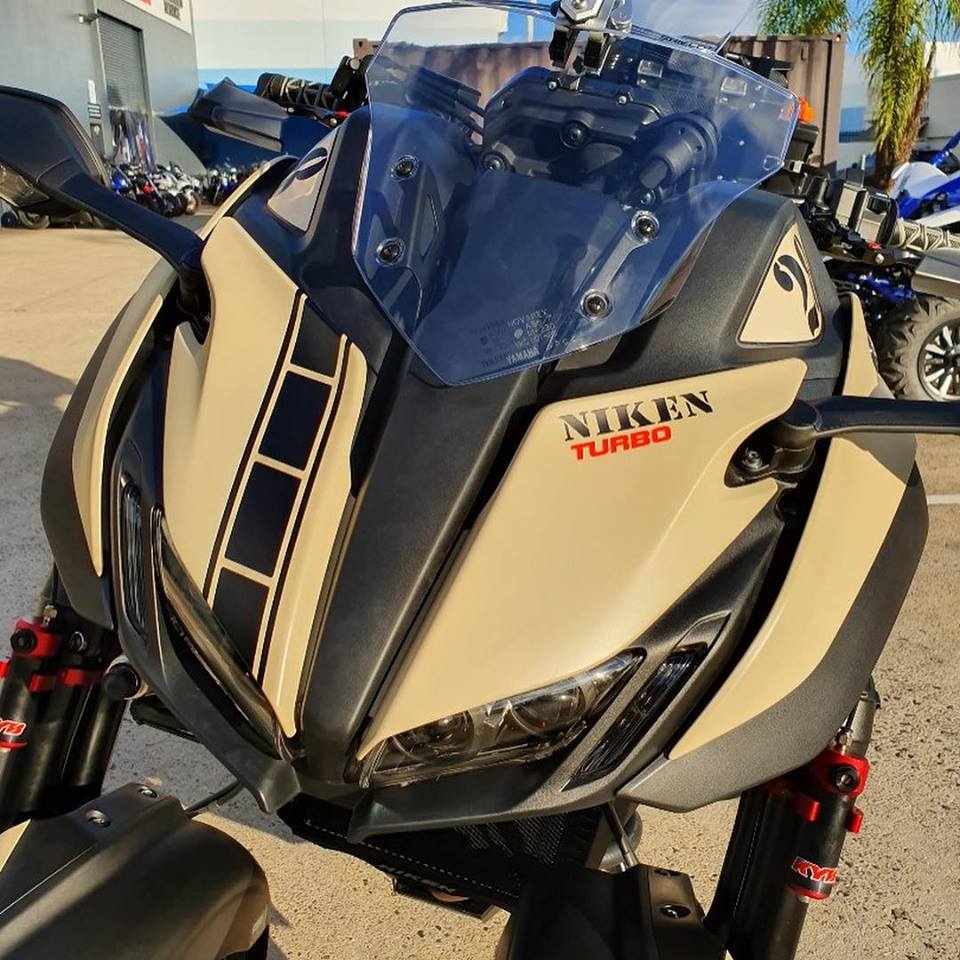 Perubahan signifikan lain ialah skema warna kustom yang diubah daripada biru Yamaha kepada coklat padang pasir. Kita juga dapat menyaksikan penggunaan fork KYB, dan ekzos kustom dengan mufler Akrapovic. Kotak barang tunggal bersaiz besar di belakang memberikan ekstra utiliti, yang mengingatkan kepada Niken GT.