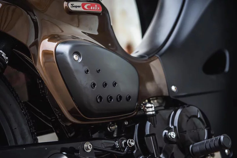 K-Speed Super Cub ini juga dipasangkan swingarm dan suspensi belakang yang panjang. Enjin 109cc standard kekal tidak berubah dengan ekzos Diablo untuk lebih ngauman deruman. Bar hendal, grip, spidometer dan peg kaki baharu melengkapkan transformasi Super Cub ini kepada jentera cafe racer yang betul-betul menarik perhatian.