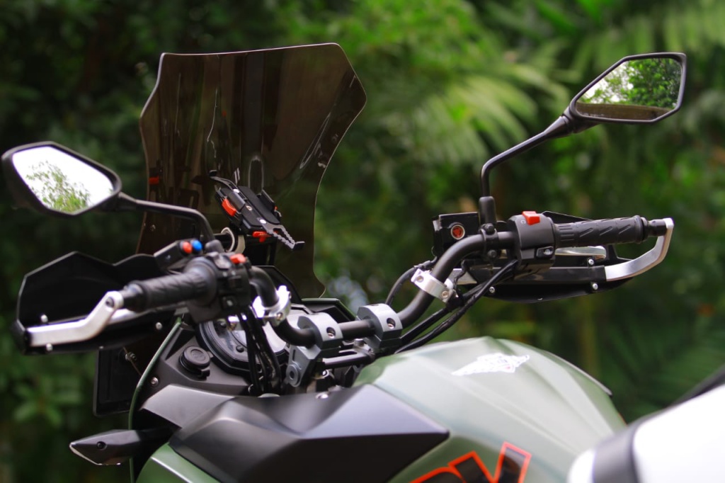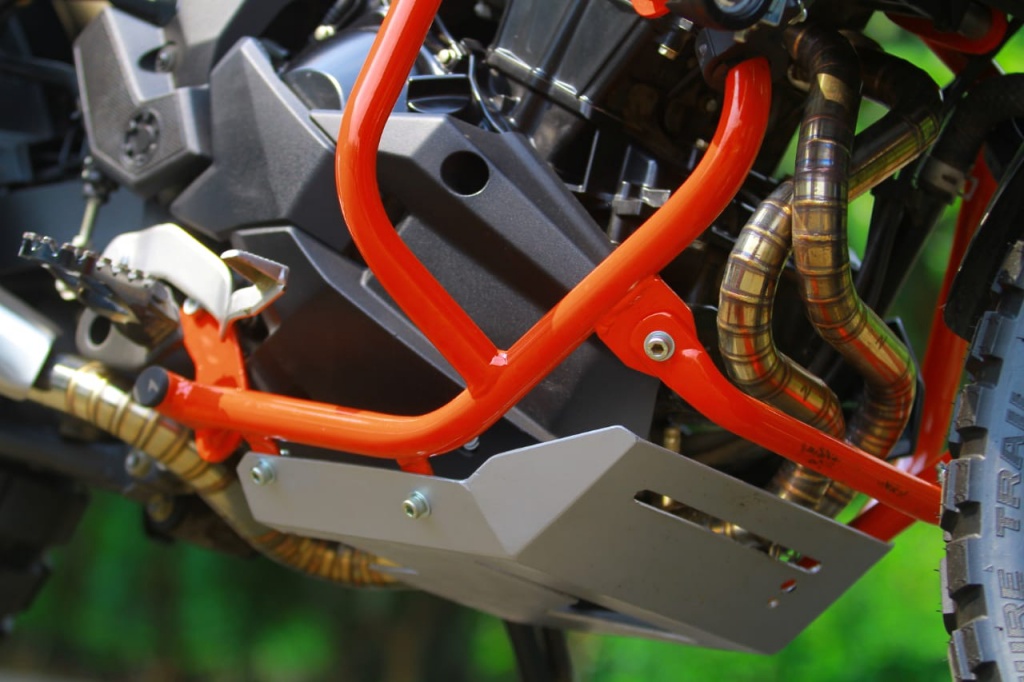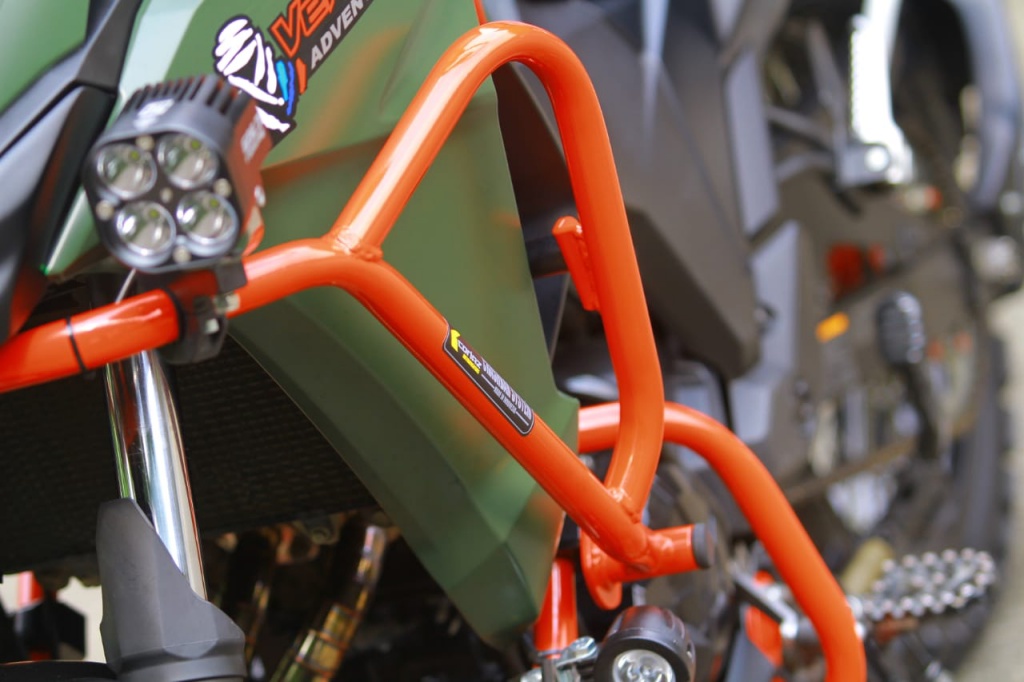 Bahagian badan depan dan tangki minyak dipasangkan bar rempuh Coriaz Moto untuk melindungi badan jentera. Bagaimanapun, pemasangan bar itu tidak banyak mengubah struktur asal motosikal atau perlu menambah sebarang lubang baharu pada frem kerana poin pengikat sudah ada. Jadi, hanya tinggal untuk dipasangkan.