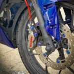 Di depan, kaliper brek digantikan dengan barangan Brembo 4-piston, dan digabungkan dengan kabel aluminium CNC. Memandang Winner X ini adalah varian bukan ABS, jadi kerja menukar brek lebih mudah dan ringkas.