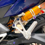 Absorber belakang ialah komponen yang bertanggungjawab menetapkan profil tinggi sesebuah motosikal. Tidak selesa dengan barang standard, tuan punya Winner X ini memilih memasang absorber Öhlins jenis tabung minyak untuk kapcainya itu. Bagi menyerlahkan lagi rupa luaran, seluruh badan disembur warna ungu jenis Titanium Grade 5.