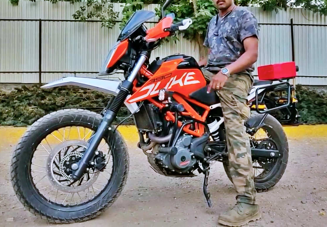 MODIFIKASI naked bike standard kepada jentera advencer ini mengambil masa empat bulan untuk disiapkan bagi mendapatkan sebuah KTM 390 Duke Adventure yang bermodalkan Rs1.5 lakh (RM8,800). Ia dibikin bengkel tuner, HDT Customs dengan memilih model 2018 sebagai jentera basis yang dapat dilihat menerusi rekabentuk lampu depan terpisah.