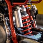 Bagi menonjolkan gaya motosikal, Wilson menukar rim asal 17 inci kepada 19 inci jenama Sun dengan jejari Buchanan yang ditambat pada hab KTM, dan ada spacer digunakan. Durelle Racing pula membantu merendahkan ketinggian asal fork dan absorber belakang WP sebanyak 2 inci (5sm), manakala dia sendiri menghasilkan pemegang fork sebelum monoshock disembur car mengikut warna badan motosikal.