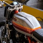 Proses mendapatkan unit penyejukan enjin agak rumit kerana dia perlu bawa pita ukur ke kawasan skrap untuk mendapatkan radiator bersesuaian yang boleh dimuatkan antara fork dan tangki minyak baharu. Akhirnya, unit radiator aluminium aftermarket, yang diambil dari Honda Magna lama. Proses mengecat diserahkan kepada pakar kemasan, Dan White dengan hasil cukup luar biasa.