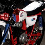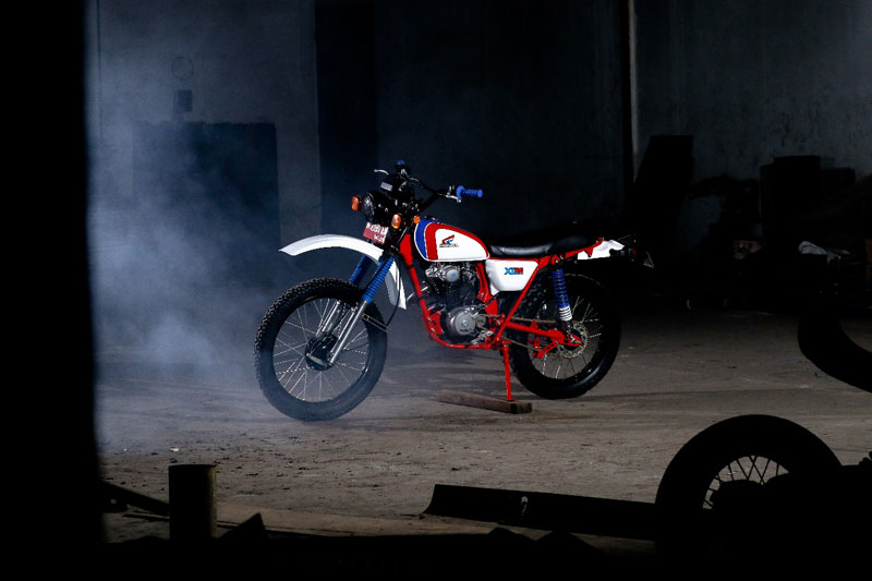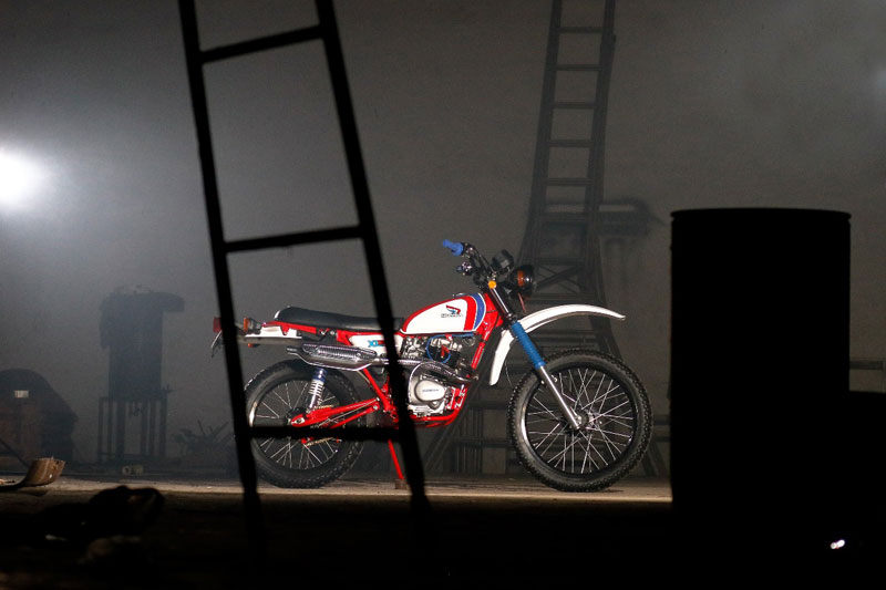 Pelana kustom disesuaikan dengan konsep awal trail vintaj dan kemudian dipadankan dengan ekzos Honda CB simpanan ayahnya selama 45 tahun, bahkan lebih tua daripada umurnya sendiri.