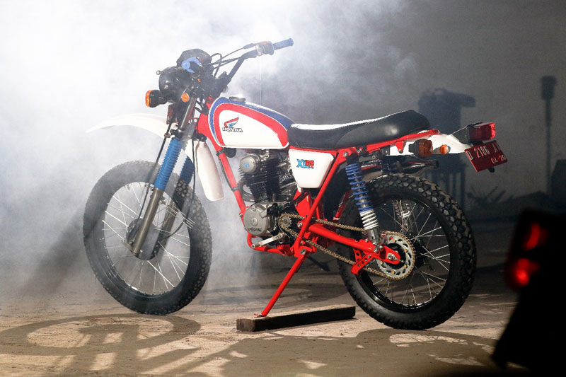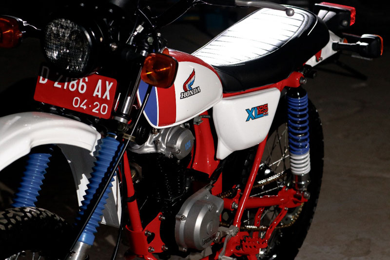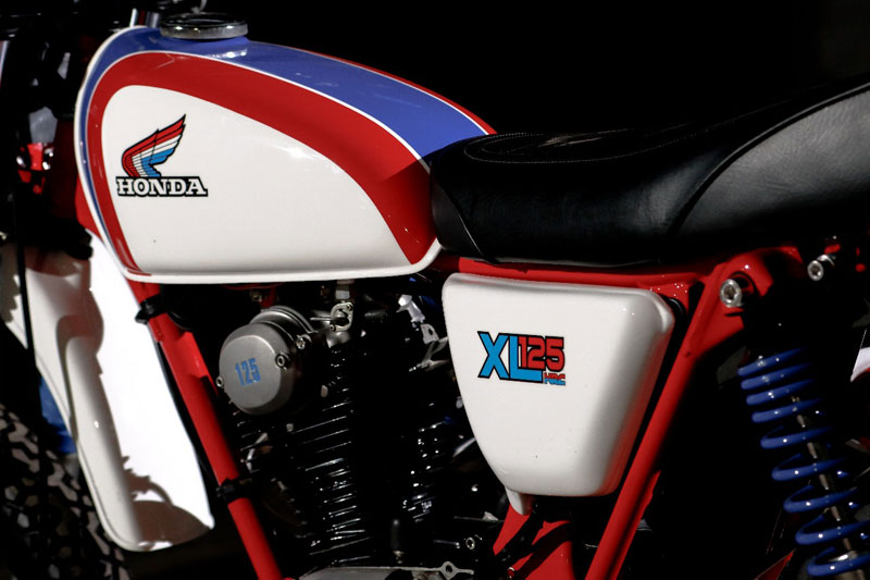 Masih lagi mengekalkan imej klasik motocross, XL125S disembur warna seragam triwarna Honda HRC.