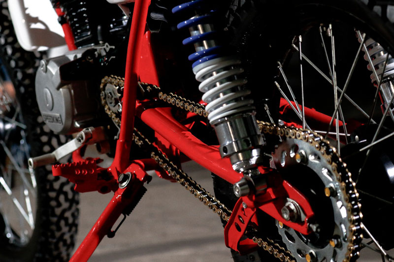 Bahagian fork depan, hendal dan brek dram depan diambil daripada Suzuki TS 125. Sementara tangki, lampu belakang dan lampu isyarat membelok masih mengekalkan yang asli. Oleh kerana sukar untuk mendapat komponen selepas pasaran, Susanto menghasilkan sendiri pelindung sisi kiri dan kanan daripada gentian untuk kelihatan seperti yang asal.
