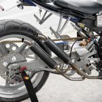 Tambahan lain ialah panel instrumen SP Takekawa yang menggabungkan skrin LCD dan takometer analog. Sistem ekzos kembar pula adalah buatan kustom Chibaac.