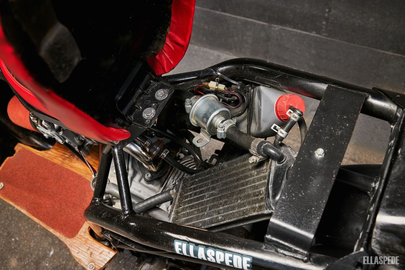 Perkara pertama dibuat ialah menanggalkan semua panel badan dan membina satu tapak lantai yang menjadi kotak simpanan semua wayar dan pekakas elektrik termasuk bateri.
