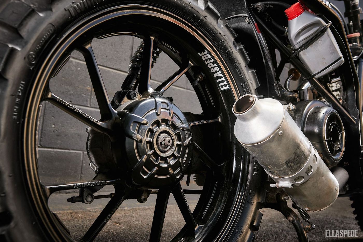 Rim aloi belakang sebenarnya datangnya dari model Yamaha MT-09 tetapi menerima beberapa pengubahsuaian. Tayar depan jenis off-road dan belakang dipadankan dengan Continental TKC80. Sistem ekzos pula dicipta dengan menggunakan beberapa bahagian sistem asal model Honda XR 600.