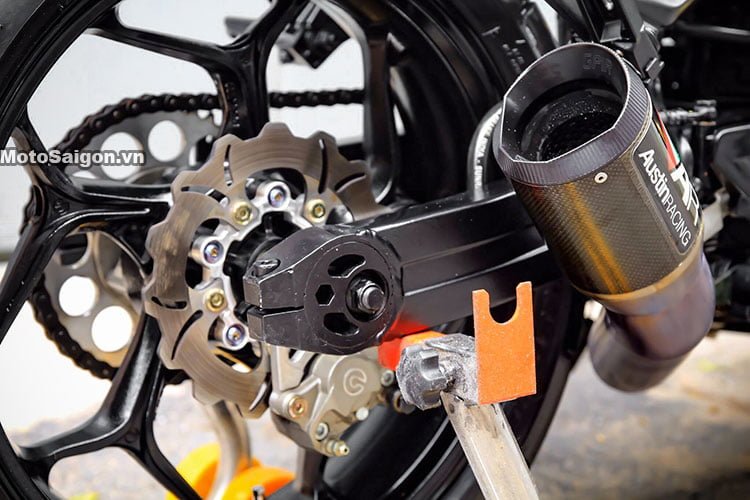Tidak ketinggalan, tayar belakang dipertingkat daripada 130mm kepada 180mm untuk mendapatkan ekstra cengkaman selain menambah aspek estetika rupa, termasuk dipasangkan brek Brembo replika di depan!