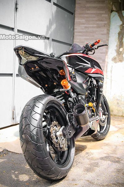 Bahagian belakang turut diubah suai untuk mendapatkan hujung lebih tirus dengan lampu LED tiga penjuru. Walaupun tidaklah begitu sempurna, tetapi bentuk yang dihasilkan memang mirip Z1000. Penambahbaikan lain termasuk takungan minyak brek depan, set klac CRG boleh laras dan tuil brek serta ekzos original Austin Racing GP1R.