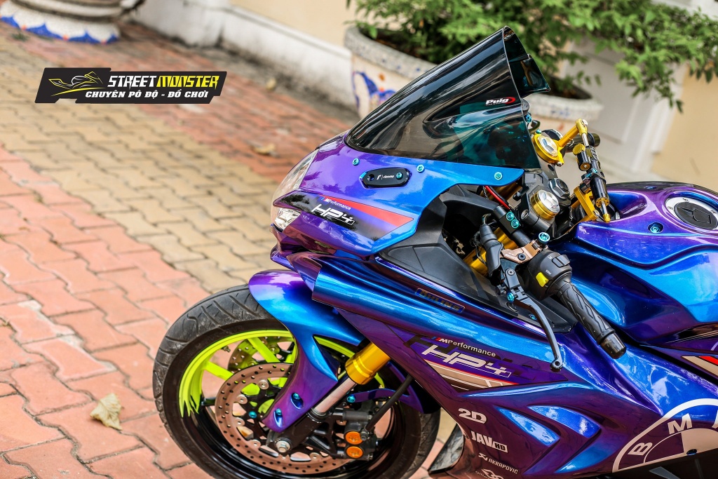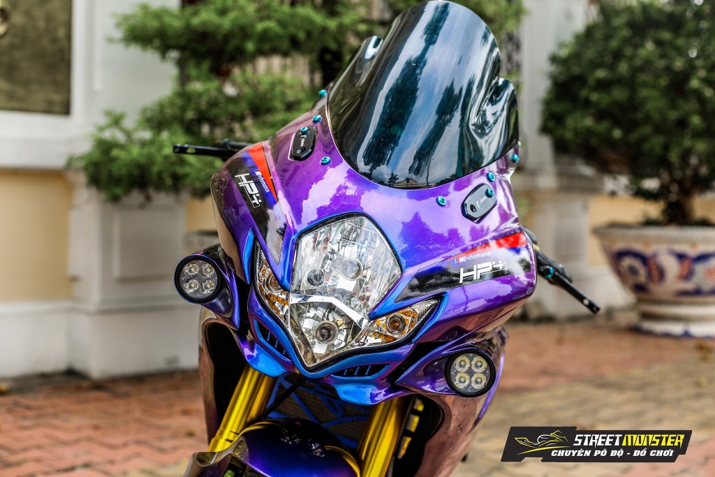 Bahagian fasia menampilkan panel fairing dikustomkan dan tambahan lampu LED, serta digabungkan dengan komponen sirip jerung ilham model BMW S1000RR. Selain itu, padanan lencana HP4 dan BMW tertera pada fairing sisi dan kepala.