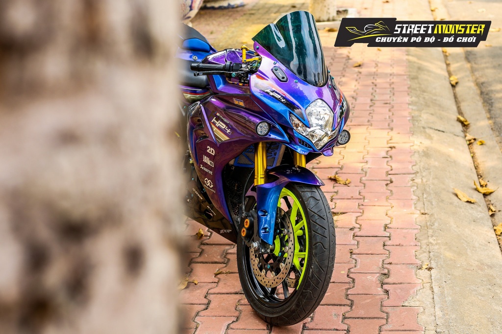 Kemasan badan GSX-R150 HP4 ini gak ekstrem dengan eksperimen warna menyilau mata biru dan ungu. Ada pula aksen warna kuning dapat dilihat pada rim dan peg kaki. turut menyerlahkan kontras warna ialah unit fork terbalik (USD) keemasan.