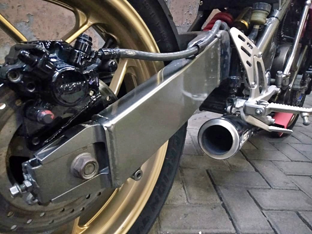Akhir sekali, bahagian enjin turut diubah suai untuk mengimbangkan penambahan berat badan baharu sportbike jadian ini. Diameter piston kini 68mm digilap secara ‘port & polish’ supaya proses pembakaran jadi lebih mantap. Hasilnya, jentera ini kekal berprestasi dan mampu mencapai kelajuan maksimum seperti versi asal.