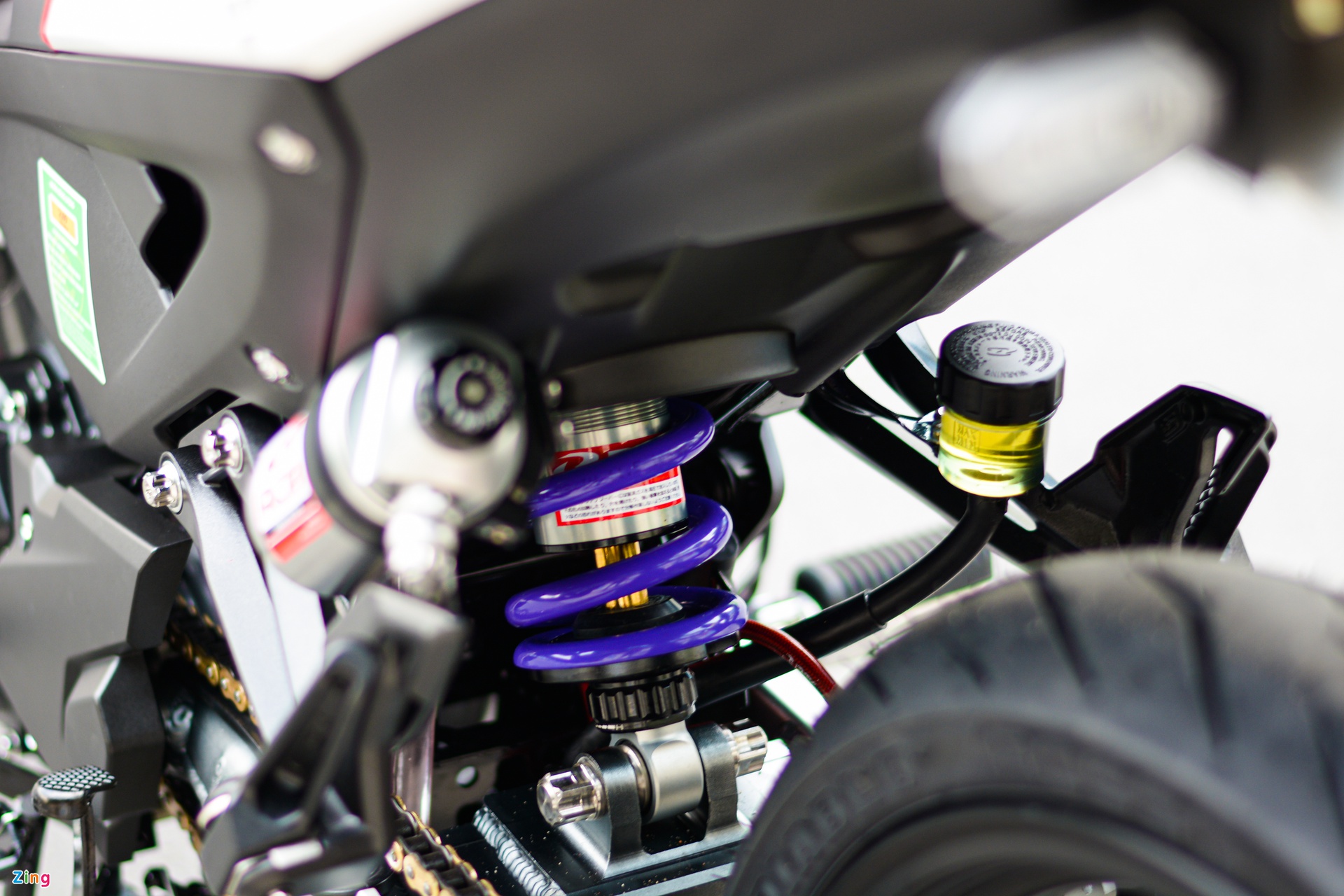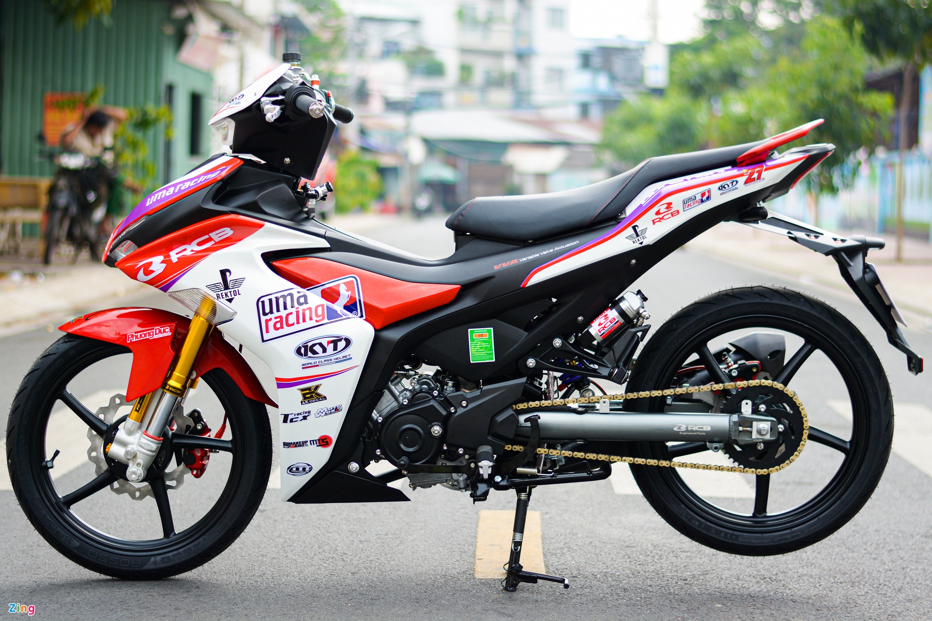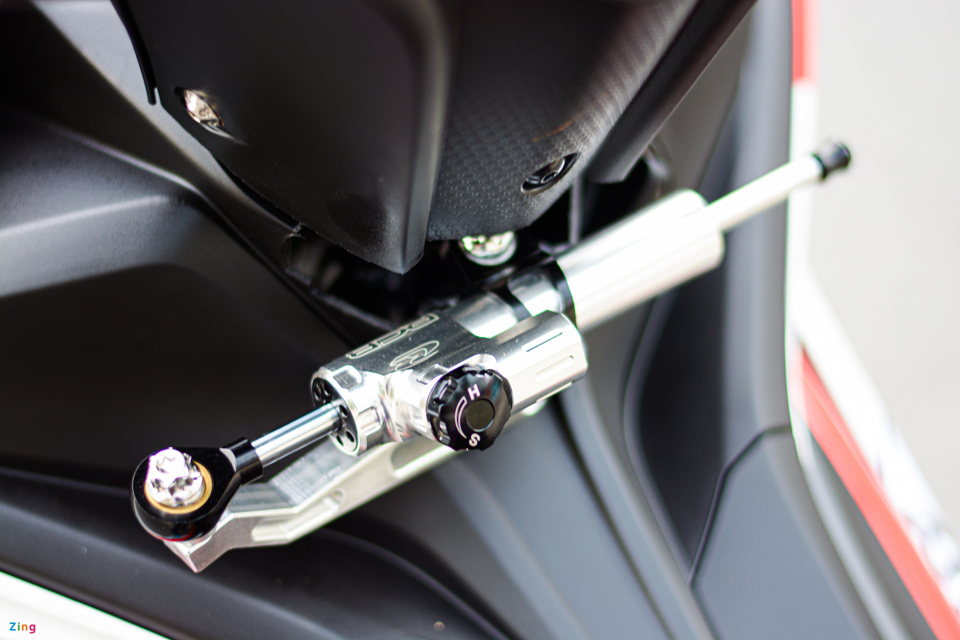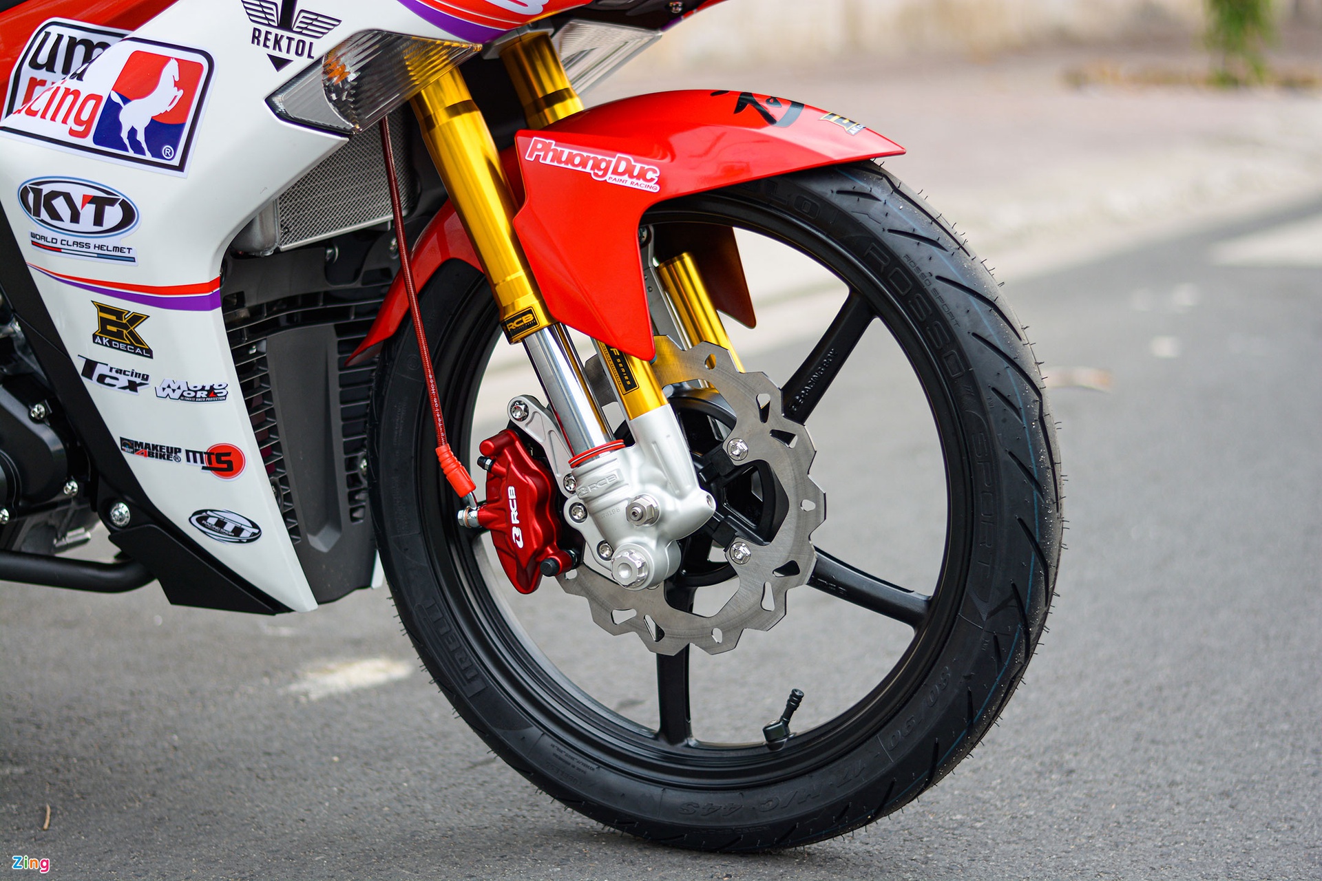 Paling menarik ialah bahagian depan yang dipasangkan unit fork terbalik (USD) berjenama Racing Boy (RCB) boleh laras, berharga 13 juta dong (RM2,270). Selain itu, rim asal turun ditukar kepada aloi 5-jejari yang lebih ringan.