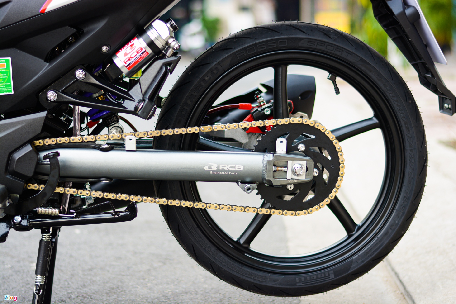 Swingarm turut menggunakan jenama RCB yang tampil unik dan ringan. Lampu belakang dipadankan dengan sepasang lampu signal belok LED yang sama seperti Honda Winner X, dan diposisikan sedikit ke atas. Berbanding lampu asal, lampu signal baharu ini nampak lebih kemas.