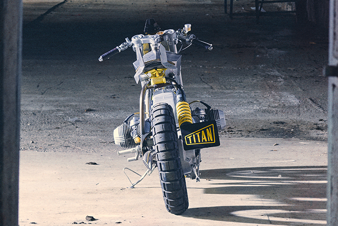 Objek pada belakang pelana nampak seperti sirip ekor jerung dan tapak pelana pula dihasilkan daripada material titanium ringan. Tangki minyak dan fairing depan juga dikustomkan dan direka untuk membantu meningkatkan imej agresif jentera ini.