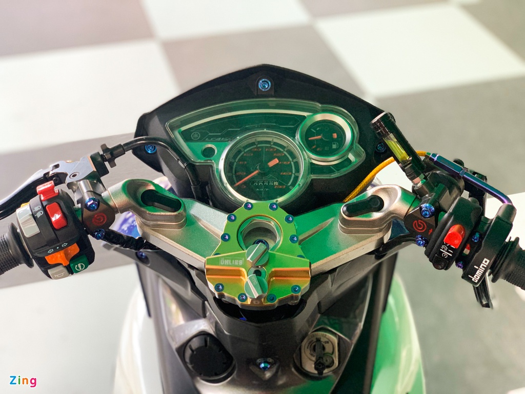 Pemilik Exciter 135 ini juga teliti dengan perincian kecil seperti pengimbang hendal (balancer), dan kabel terotel daripada material titanium yang berharga hampir 5 juta dong (RM920). Set suis pada hendal kiri daripada Honeywell, manakala hendal kanan menggunakan suis penghidup dan grip bar Domino.