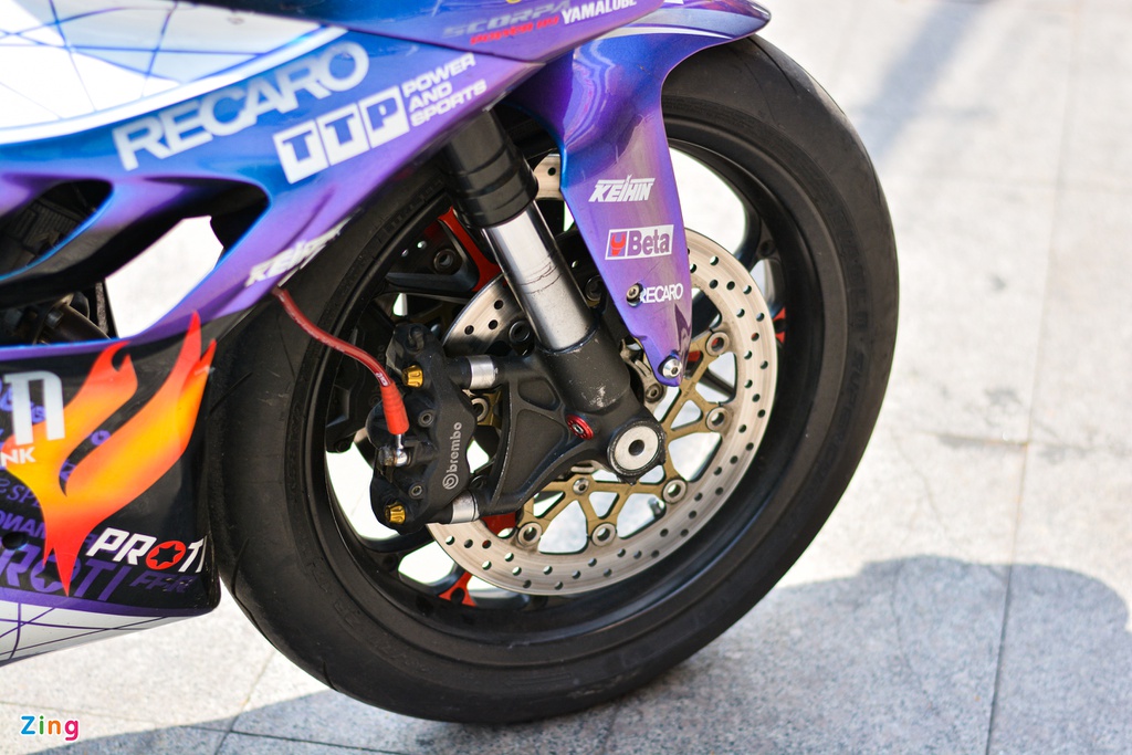 Naik taraf sistem suspensi depan membabitkan pemasangan fork terbalik (USD) dan sistem brek cakera kembar dengan kaliper Brembo 2-piston. Panel meter asal digantikan unit daripada skuter Yamaha NVX, yang juga antara komponen popular dalam kalangan mat motor Exciter 150 di Vietnam.