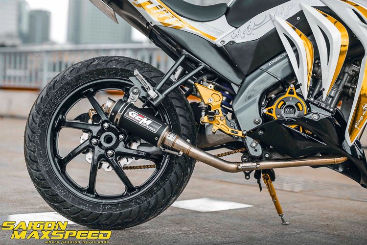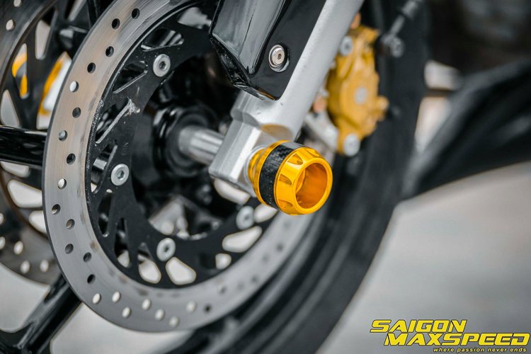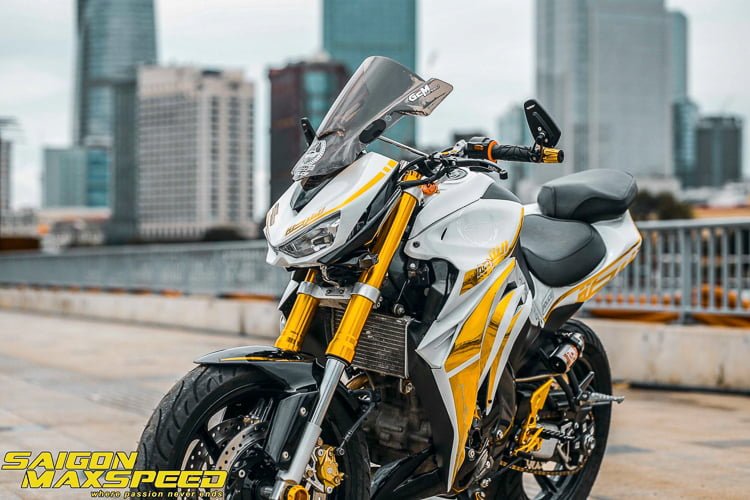 Kemasan cat emas turut dapat dilihat pada badan jentera, hujung hendal dan juga tongkat. Gabungan visor pengadang angin tinggi membantu keselesaan penunggang ketika menunggang jauh. Berikut beberapa senarai peralatan, komponen dan aksesori yang mengubah FZ150i menjadi Z1000: