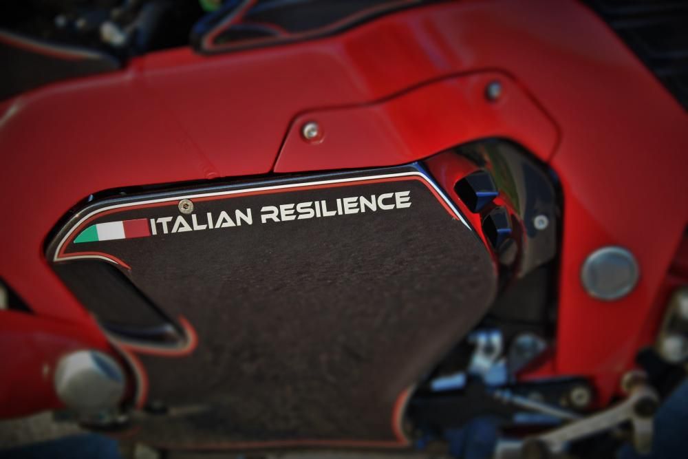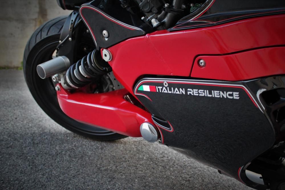 Rekabentuk swingarm depan dikekalkan yang menampakkan keunikan jentera tersebut. Ini juga sebahagian ciri yang mempopularkan sport tourer Jepun tersebut. Kerana karakteristik dimiliki, Frugaroli menggunakan idea sama untuk projek Italian Resilience.