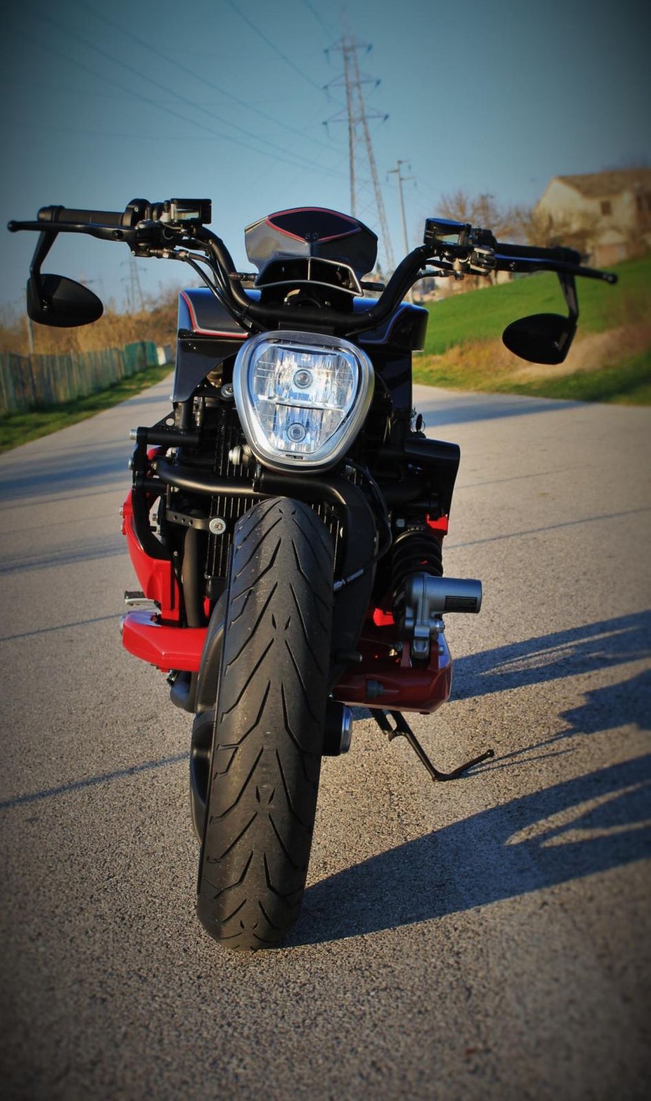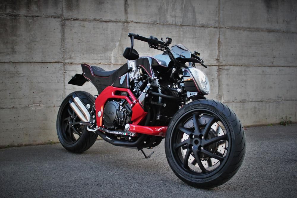 Frugaroli turut menggunakan pod lampu Piaggio Beverly yang dipasangkan dalam frem kustom. Bahagian mekanikal masih sama, dijana enjin empat sebaris GTS 1000cc, tetapi unit suntikan pancitan bahan api elektronik (EFI) digantikan dengan karburetor Yamaha FZR1000 (1987). Ini bermaksa kuasa maksimum dapat dikekalkan pada 102hp @ 9,000rpm dan tork 106Nm @ 6,500rm.