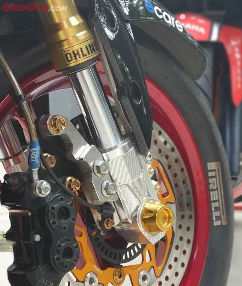 - Suspensi depan dinaik taraf kepada fork terbalik (USD) daripada Ohlins berwarna emas, manakala suspensi belakang jenis monoshock.