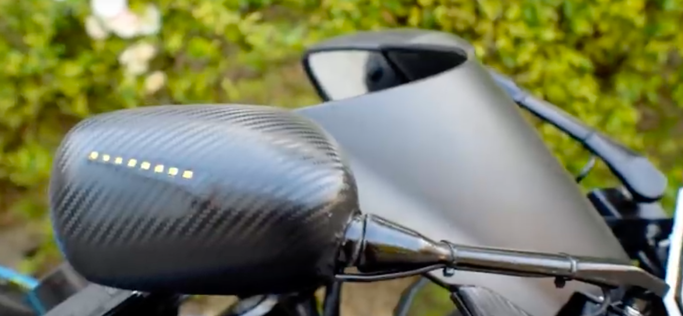 Perumah cermin sisi digabungkan dengan signal belok LED yang diposisikan pada muka depan R15. Lebih menarik cermin sisi itu boleh buka-lipat automatik. Sentuhan pelekat strip dengan tekstur gentian karbon meningkatkan penampilan sporty sportbike tersebut.