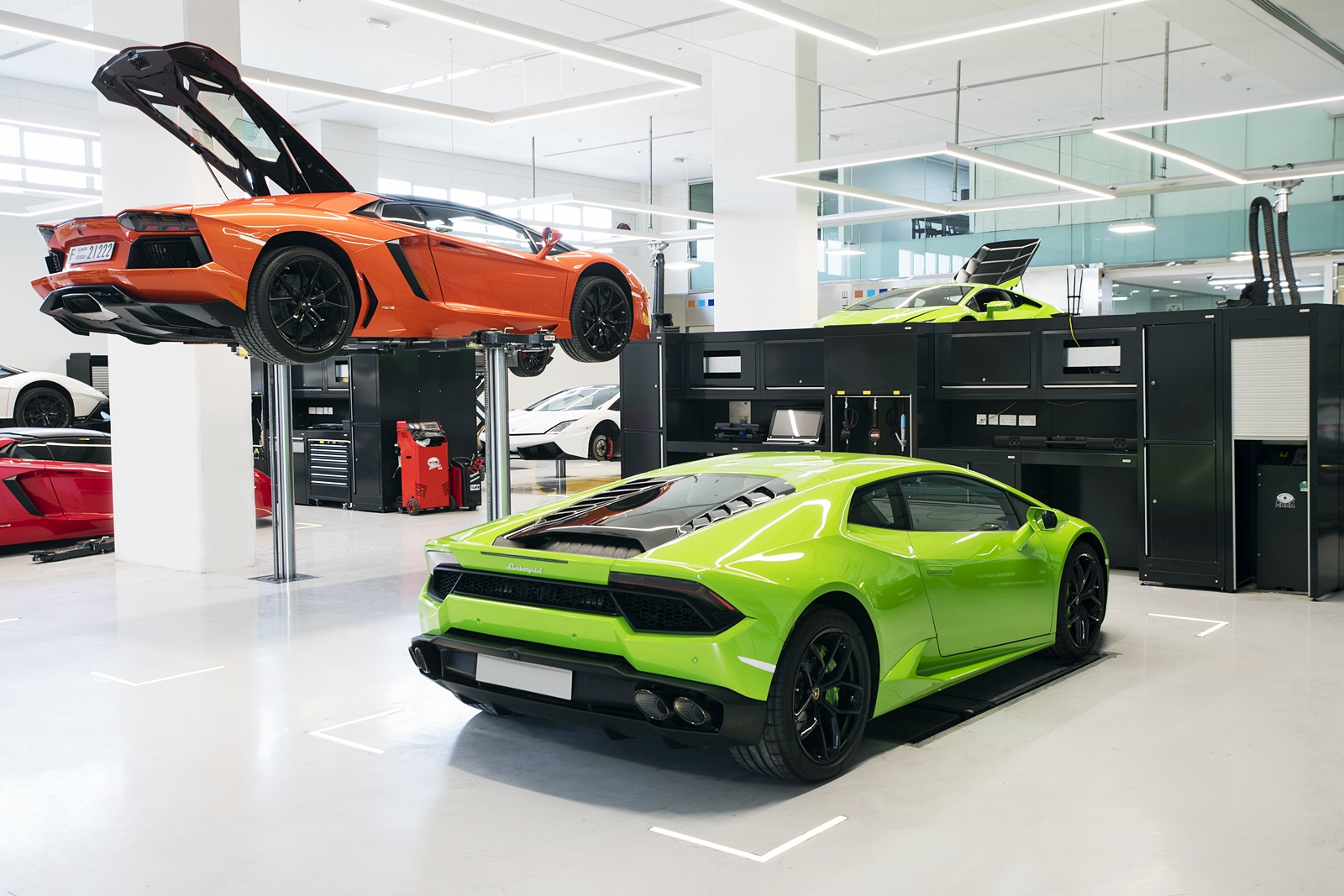 Bilik pameran yang siap dengan pusat servis itu terletak di Jalan Sheik Zayed, Dubai di Emiriyah Arab Bersatu (UAE) dan kini menjadi antara 12 rangkaian jualan Lamborghini di Timur Tengah dan Afrika.