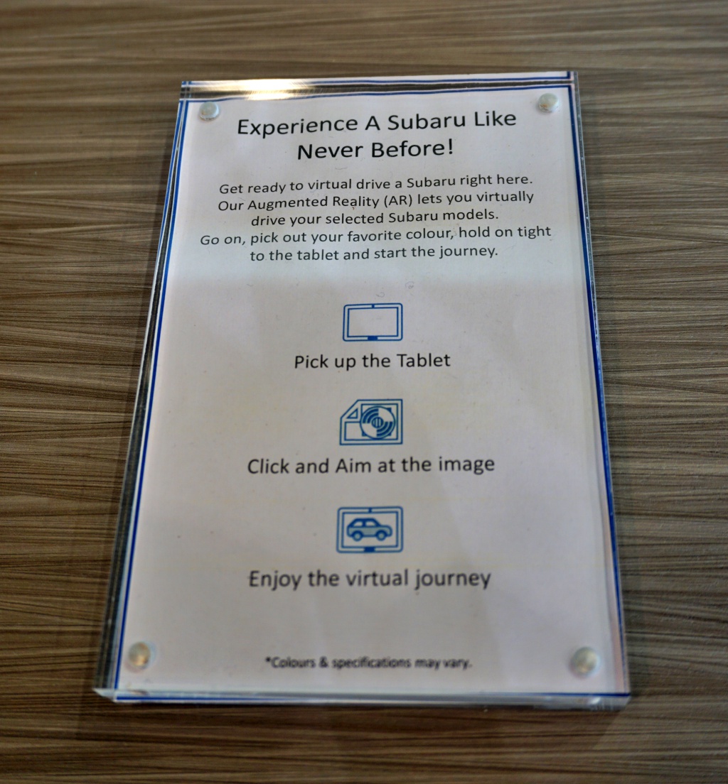 MOTOR Image menambah baik bilik pameran Subaru di Petaling Jaya, Selangor dengan melengkapkan premis berkenaan dengan integrasi gaya hidup teknologi terkini untuk memberkan pengalaman unik dan berbeza kepada pelanggan. Gabungan teknologi AR* dan VR*, menjadikan premis berkenaan sebagai bilik pameran pertama menampilkan teknologi seumpama itu.