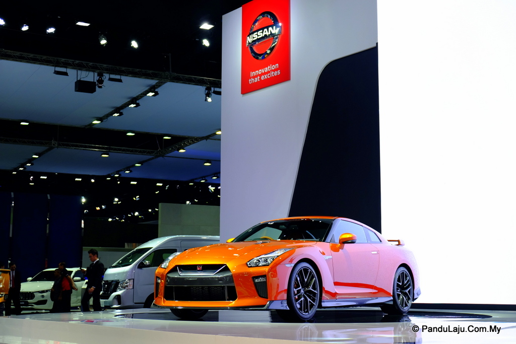 PENGUNJUNG Pameran Motor Antarabangsa Bangkok (BIMS) 2018 berpeluang menyaksikan debut rasmi model sport popular, Nissan GT-R Premium Edition yang dikuasakan enjin V6 petrol 3.8L VR38DETT Twin Turbo berkuasa 570hp pada 6,800rpm dan tork 637Nm (3,300-5,800rpm) serta transmisi dual klac 6-kelajuan dalam sistem pacuan empat roda (4WD).