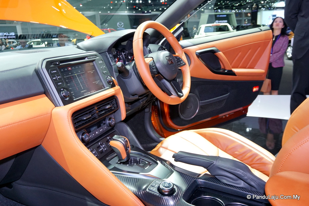 Menjengah ruang kabin, kerusi GT-R Premium Edition dimewahkan dengan kemasan kulit bersama fungsi pelarasan elektrik. Bahagian papan pemuka tersergam paparan skrin 8-inci, sistem bunyi Bose dengan 11 pembesar suara, sambungan audio, CD/MP3/Auksiliari dan dua port USB, sistem navigasi dan sistem penyaman udara dual zon.
