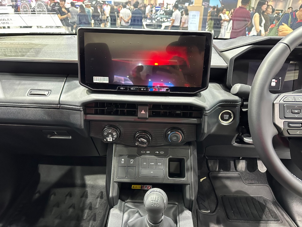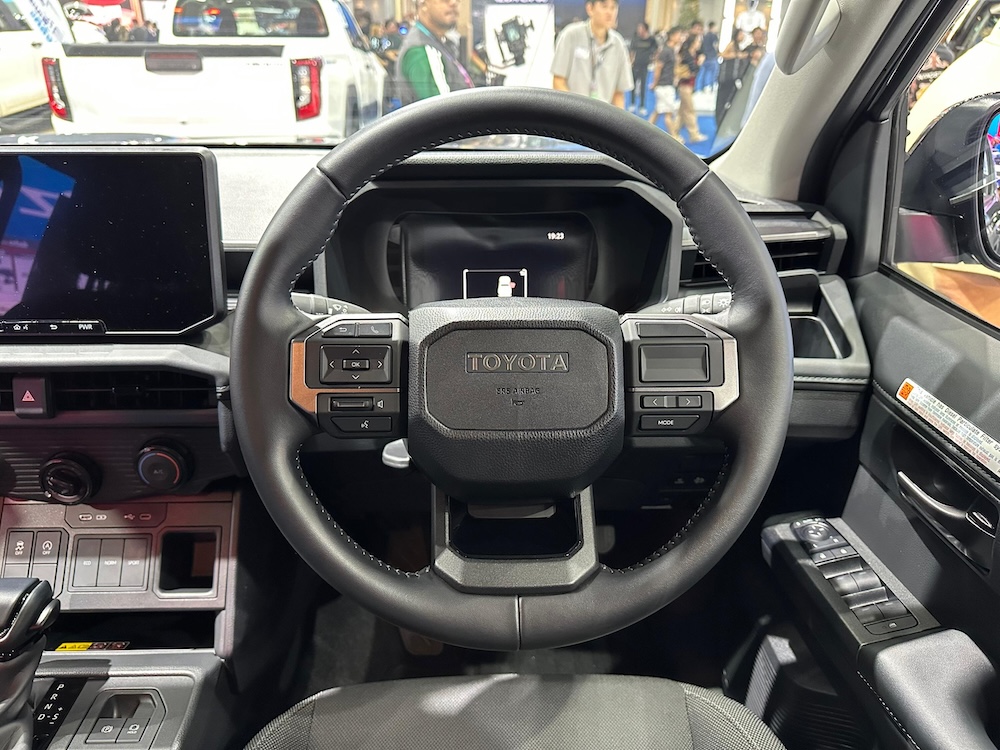 Reka bentuk lebih bersegi dan tegap, lengkap dengan skrin infotainment terapung serta stereng yang mirip Toyota Land Cruiser. Kawalan pendingin hawa masih menggunakan tombol fizikal, satu ciri yang pasti digemari pengguna pikap.