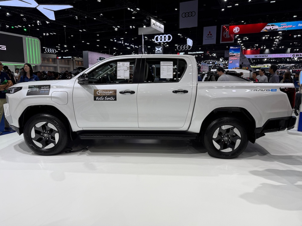 Tarikan utama sudah tentu Hilux Travo-e, versi elektrik penuh pertama untuk model ini. Ia menggunakan motor elektrik berkembar (dual-motor) dengan output gabungan 196 horsepower (144 kW). Motor depan menghasilkan 205.5 Nm, manakala motor belakang 268.6 Nm.