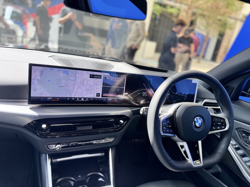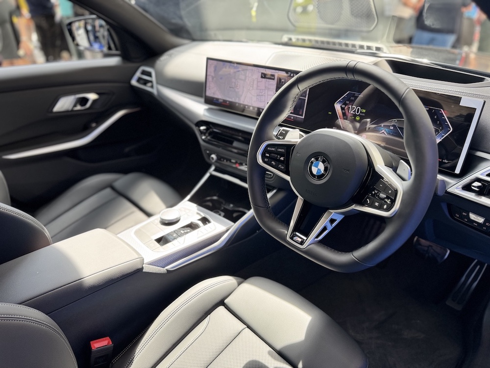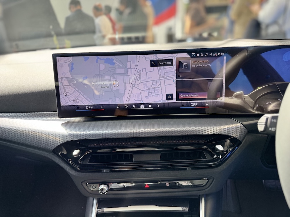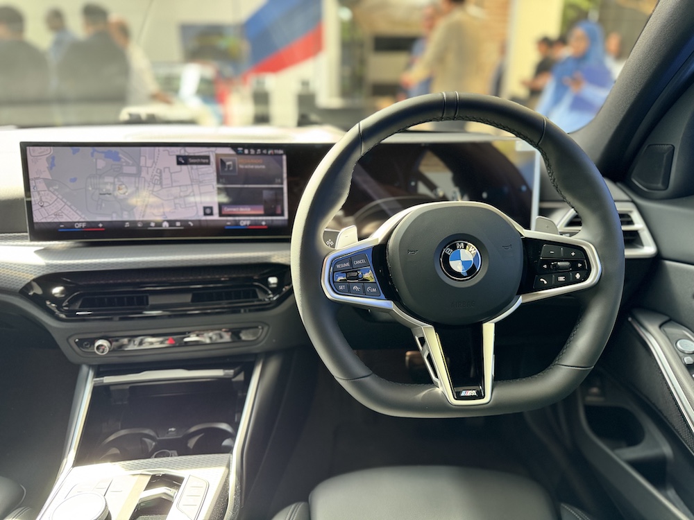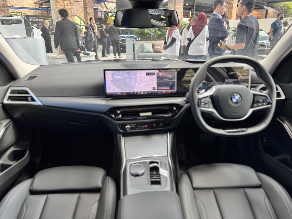 Bahagian dalaman menyerlahkan suasana kabin kontemporari BMW, dengan paparan lengkung BMW Curved Display, terdiri daripada kluster instrumen digital 12.3 inci dan unit infotainment skrin sentuh 14.9 inci yang disepadukan kemas.