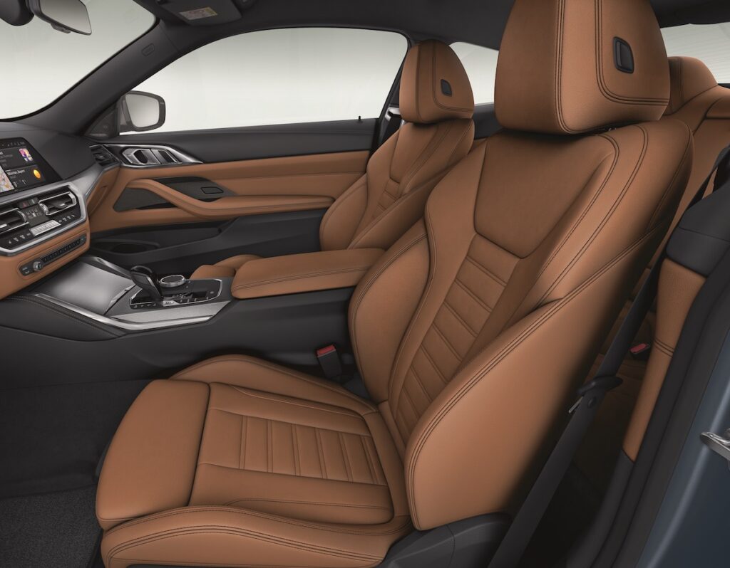 - Kemasan kabin terdiri daripada kerusi sport, stereng kulit M, pedal M, upholsteri kulit Vernasca Leather dan bumbung antrasit BMW Individual. Trim kemasan Aluminium Tetragon dan tali keledar M.