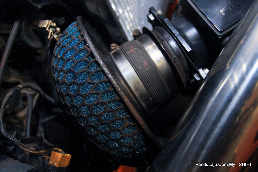 Bukan itu saja, enjin berprestasi tinggi milik Mon Azren itu sudah menjalani beberapa penambahbaikan. Bermula dari bahagian pengambilan udara, ia menggunakan ‘Manifold’ dari Nismo yang ditempah khas bersama-sama ‘throttle body’ jenis super 90mm V8 dan ‘adapter’.