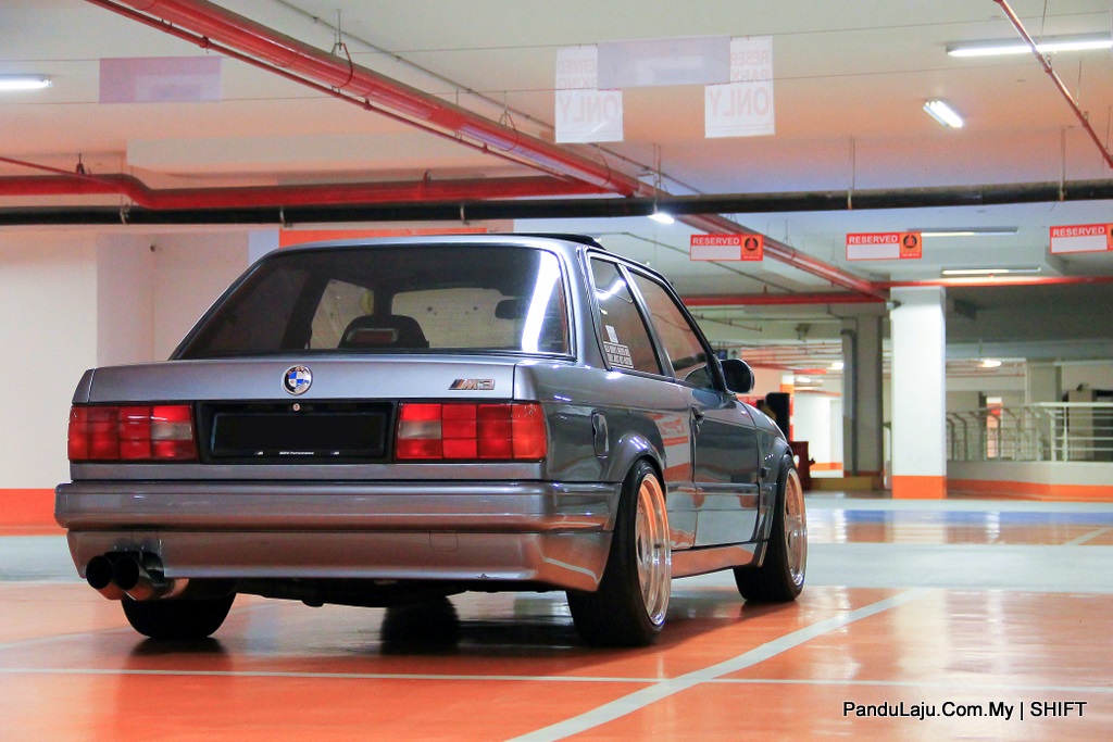 Beralih ke bahagian luaran, ia masih mengekal bodykit asal E30 M Tech 2. Selain itu, beberapa ciri tambahan turut dilakukan seperti bumbung panoramik dan ‘pop up back side mirror’.