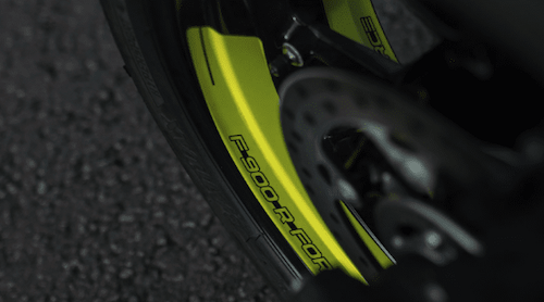 - Bahagian roda menggunakan sistem brek cakera kembar 320mm dengan kaliper radial 4-piston di depan, dan cakera tunggal kaliper piston tunggal di belakang, serta siap dilengkapi teknologi Sistem Brek Anti-Kunci (ABS).
