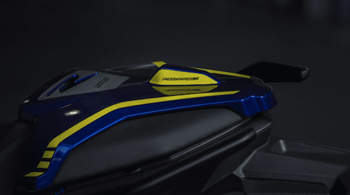 - Ada beberapa komponen berbeza seperti visor angin dengan lencana R, kowl enjin berserta aksen kuning, kowl pelana dan rim aksen kuning.