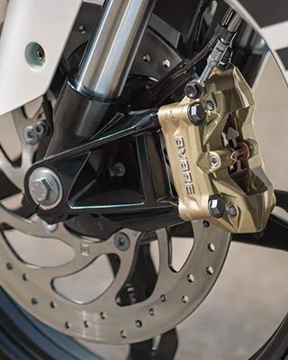 - Brek cakera tunggal di depan dan belakang dengan Sistem Brek Anti-Kunci (ABS) dwi-saluran.