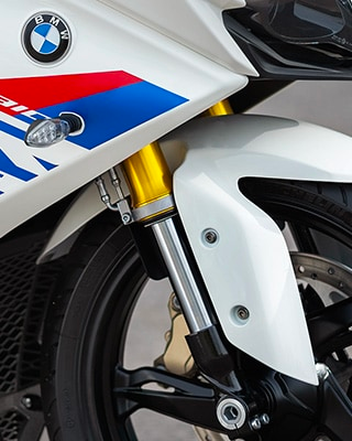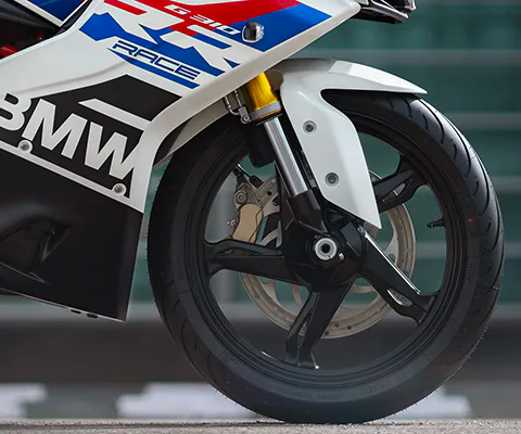 - Walaupun lebih mahal daripada Apache RR 310, G 310 RR ini tidak dibekalkan tetapan suspensi boleh laras, cuma fork terbalik (USD) di depan dan monoshock.