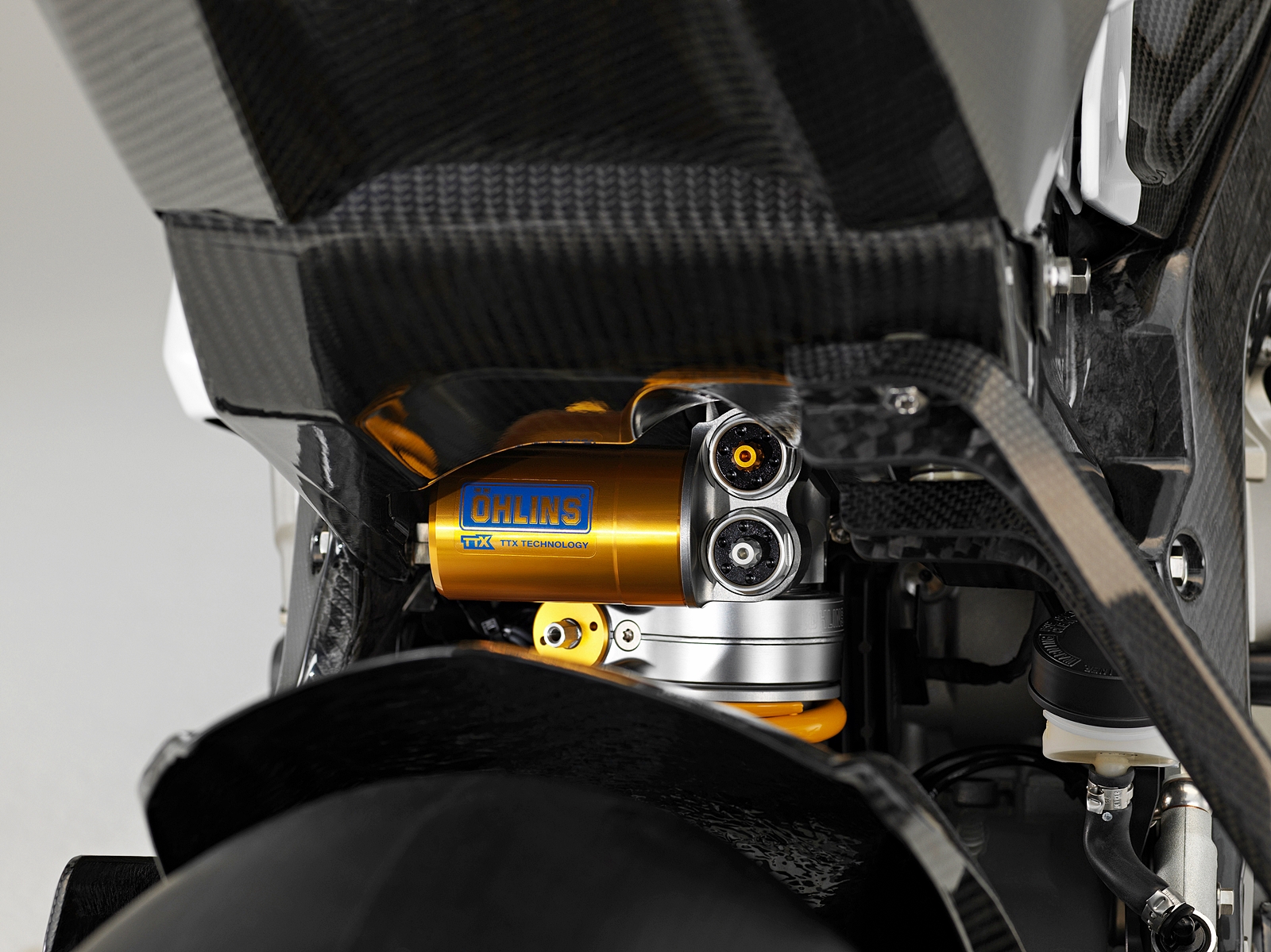 - Fork terbalik (USD) FGR 300 dan strut gegelung TTX 36 GP dibekalkan pengeluar Sweden, Öhlins, juga komponen sama digunakan jentera dalam siri WorldSBK dan MotoGP.